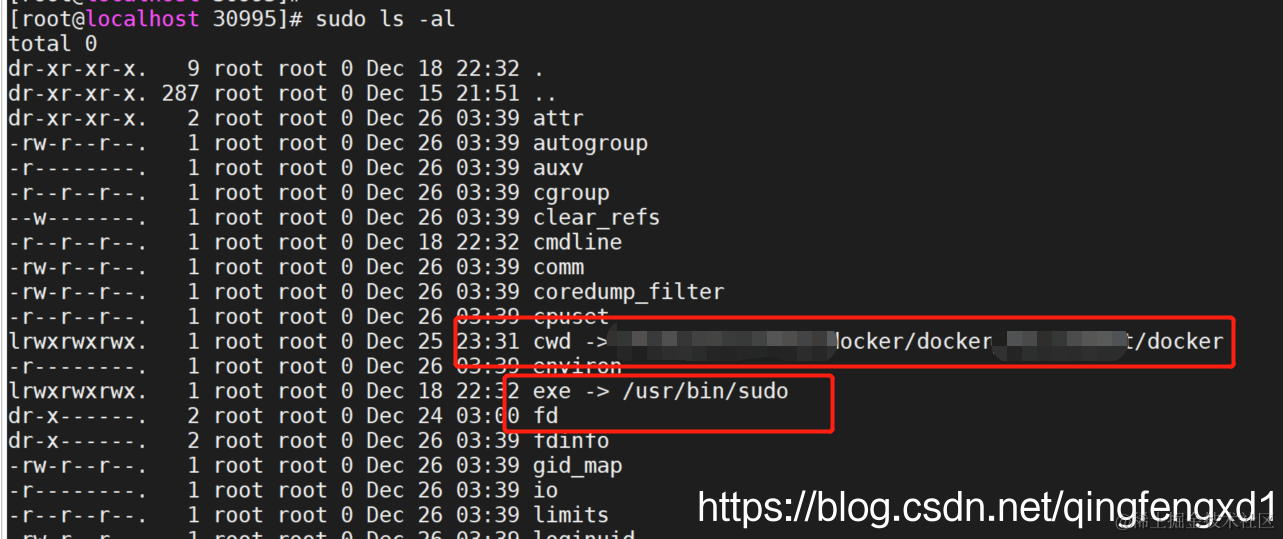 Linux 使用ps命令查看某个进程文件的启动位置 算法工程师的学习日志 2021-06-17 171 阅读1分钟 思路: 1、首先使用ps -ef找到程序进程号 2、在proc下找到对应的进程信息 步骤: 1、ps -ef |grep dockerd 发现sudo dockerd进程号为30995 2、进入/proc/30995 注意: cwd符号链接的是进程运行目录; exe符号连接就是执行程序的绝对路径; cmdline就是程序运行时输入的命令行命令; environ记录了进程运行时的环境变量; fd目录下是进程打开或使用的文件的符号连接。
