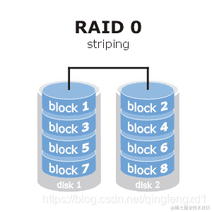 RAID 0又称为Stripe或Striping,它代表了所有RAID级别中最高的存储性能。RAID 0提高存储性能的原理是把连续的数据分散到多个磁盘上存取,这样,系统有数据请求就可以被多个磁盘并行的执行,每个磁盘执行属于它自己的那部分数据请求。这种数据上的并行操作可以充分利用总线的带宽,显著提高磁盘整体存取性能。