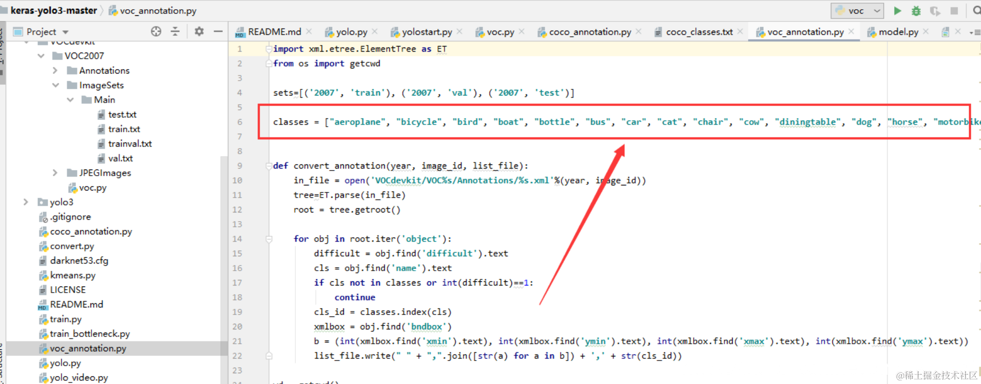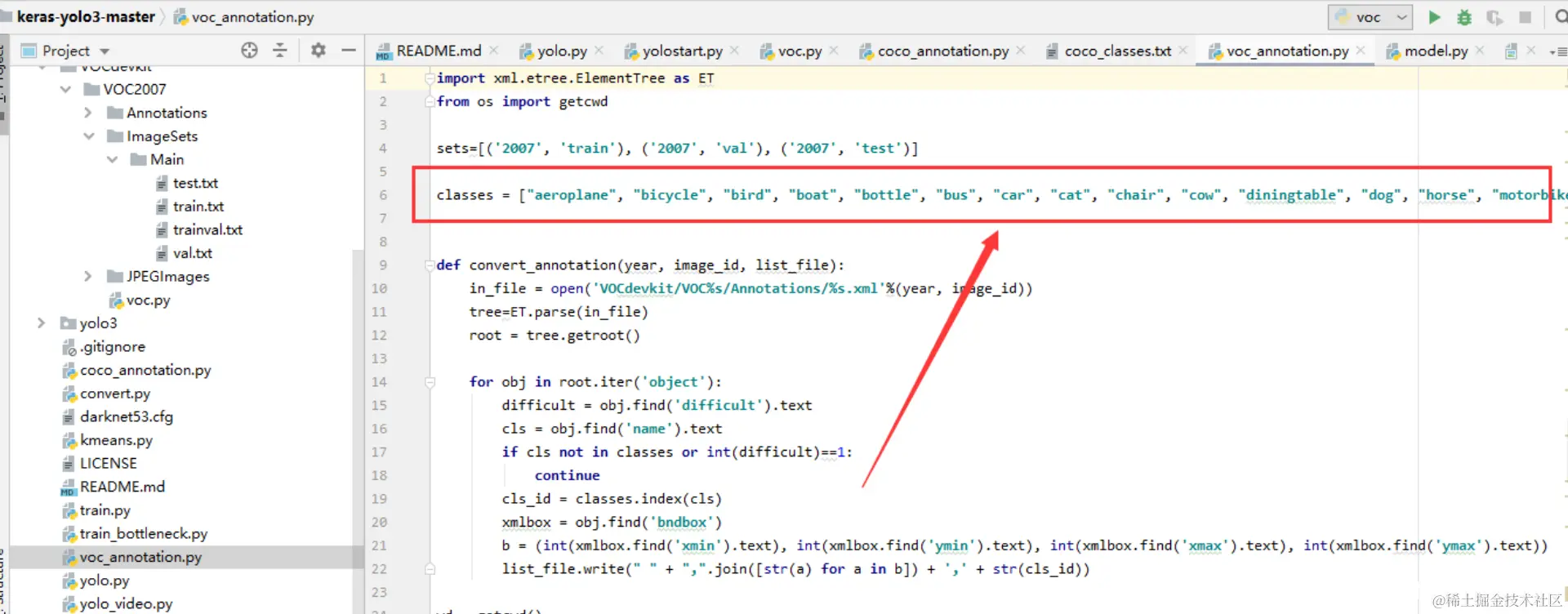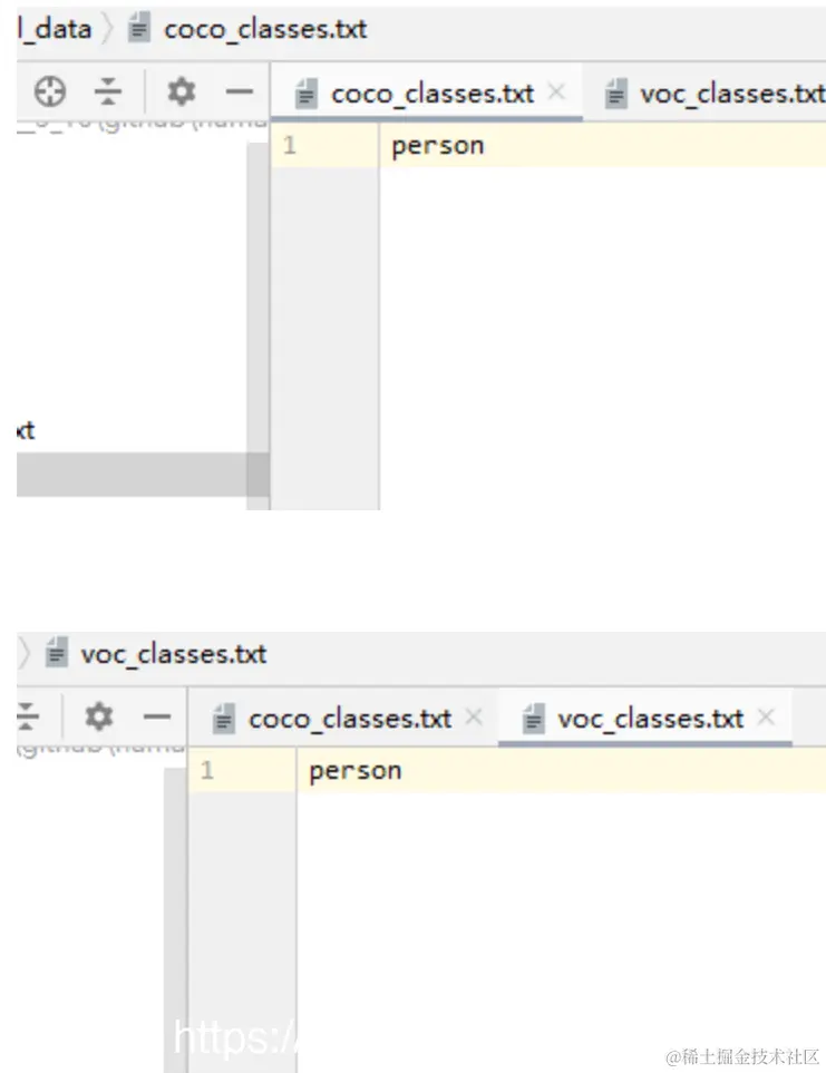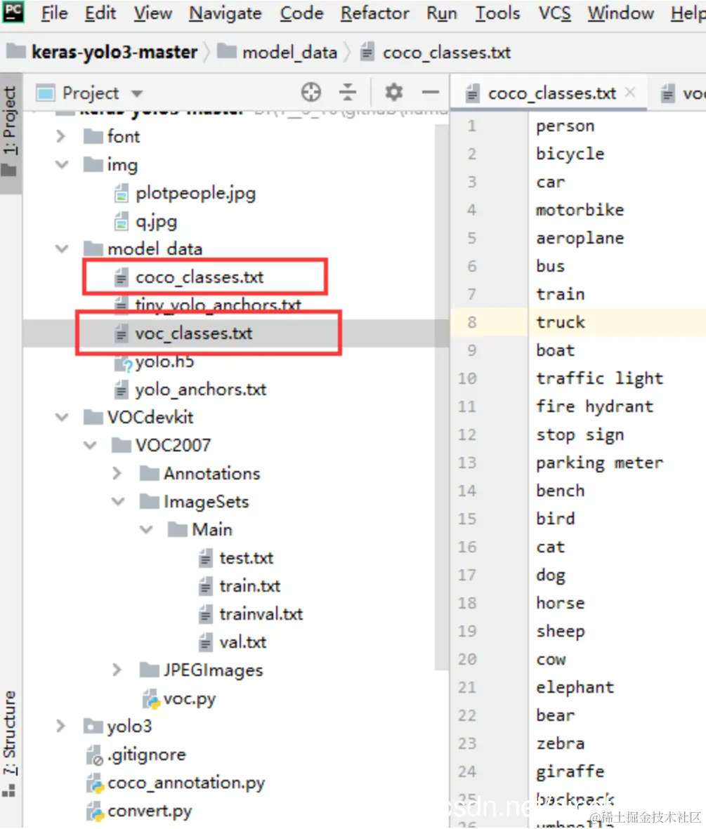 将 coco_classes.txt 和 voc_classes.txt 中也只留下VOC2007 中所标注的那个类型