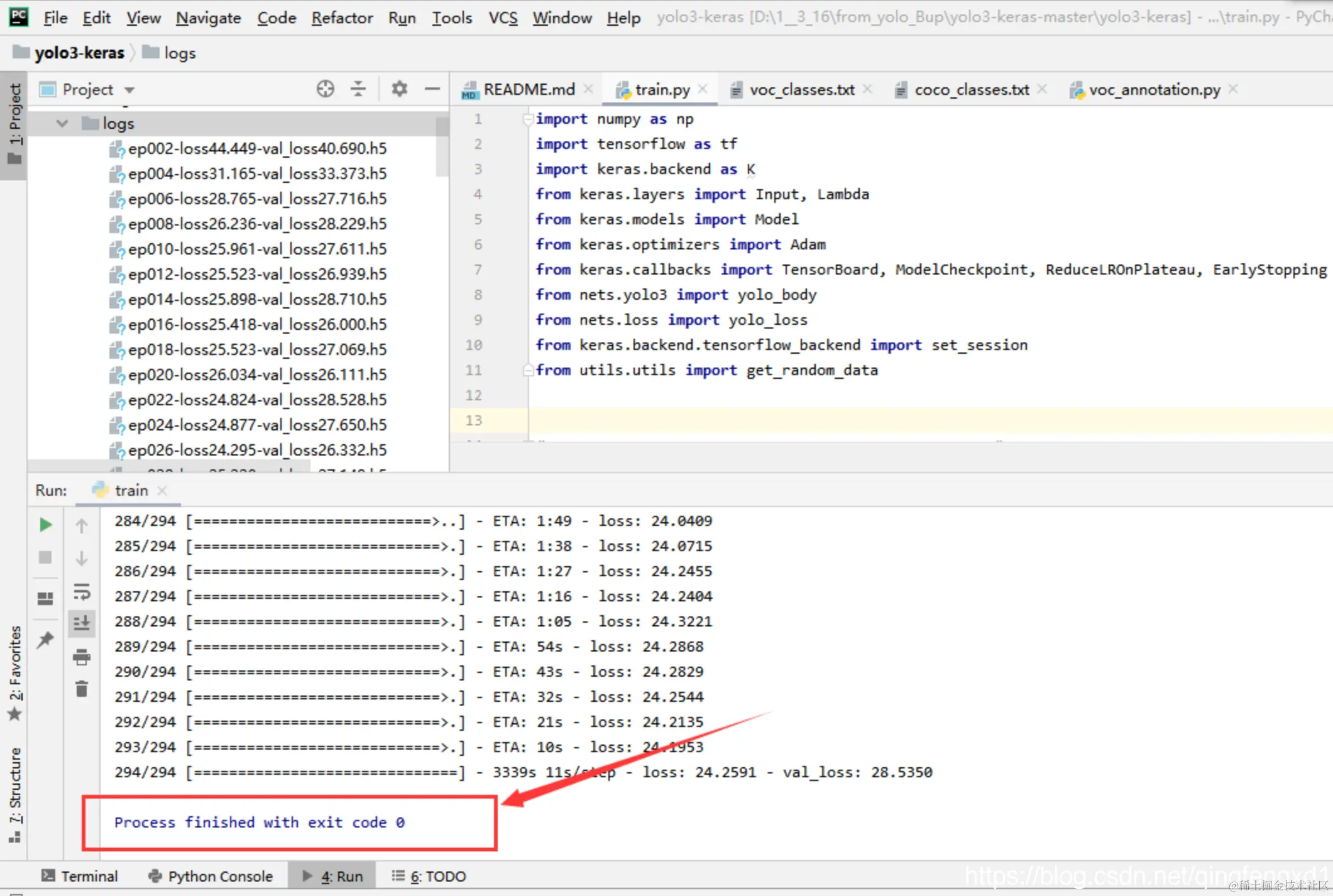训练好的权重都放在 logs 文件夹下的 000 文件夹里: