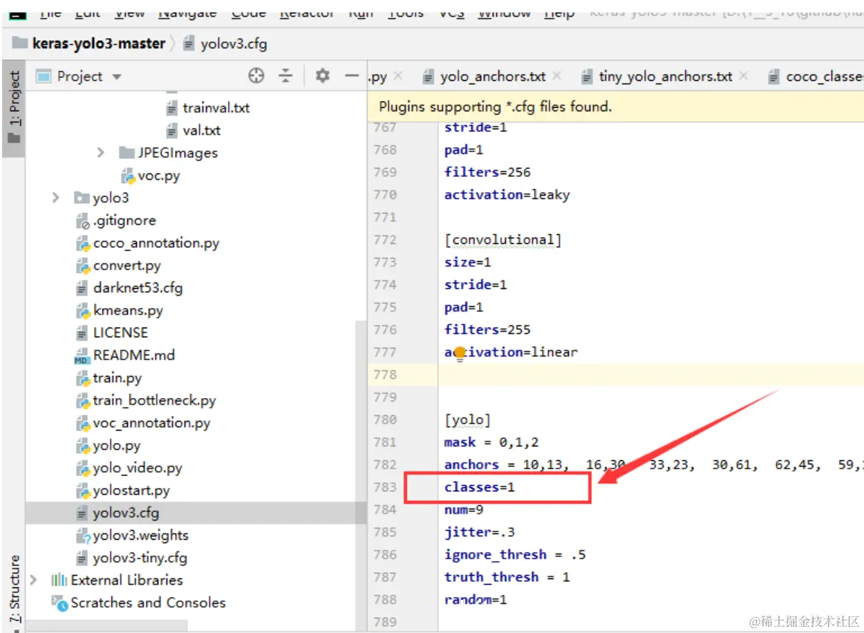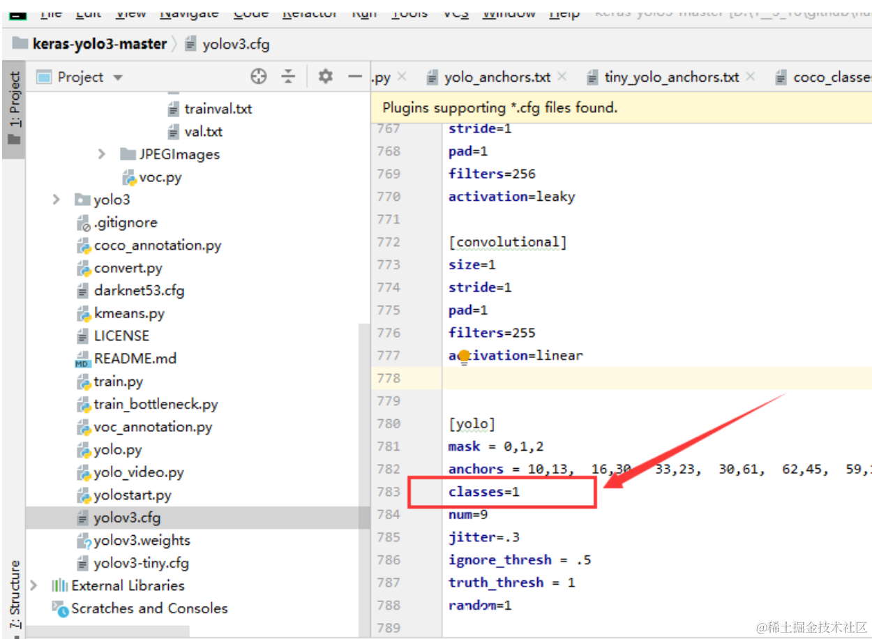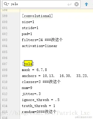 注: IDE里直接打开cfg文件,ctrl+f搜 yolo, 总共会搜出3个含有yolo的地方,睁开你的卡姿兰大眼睛,3个yolo!!