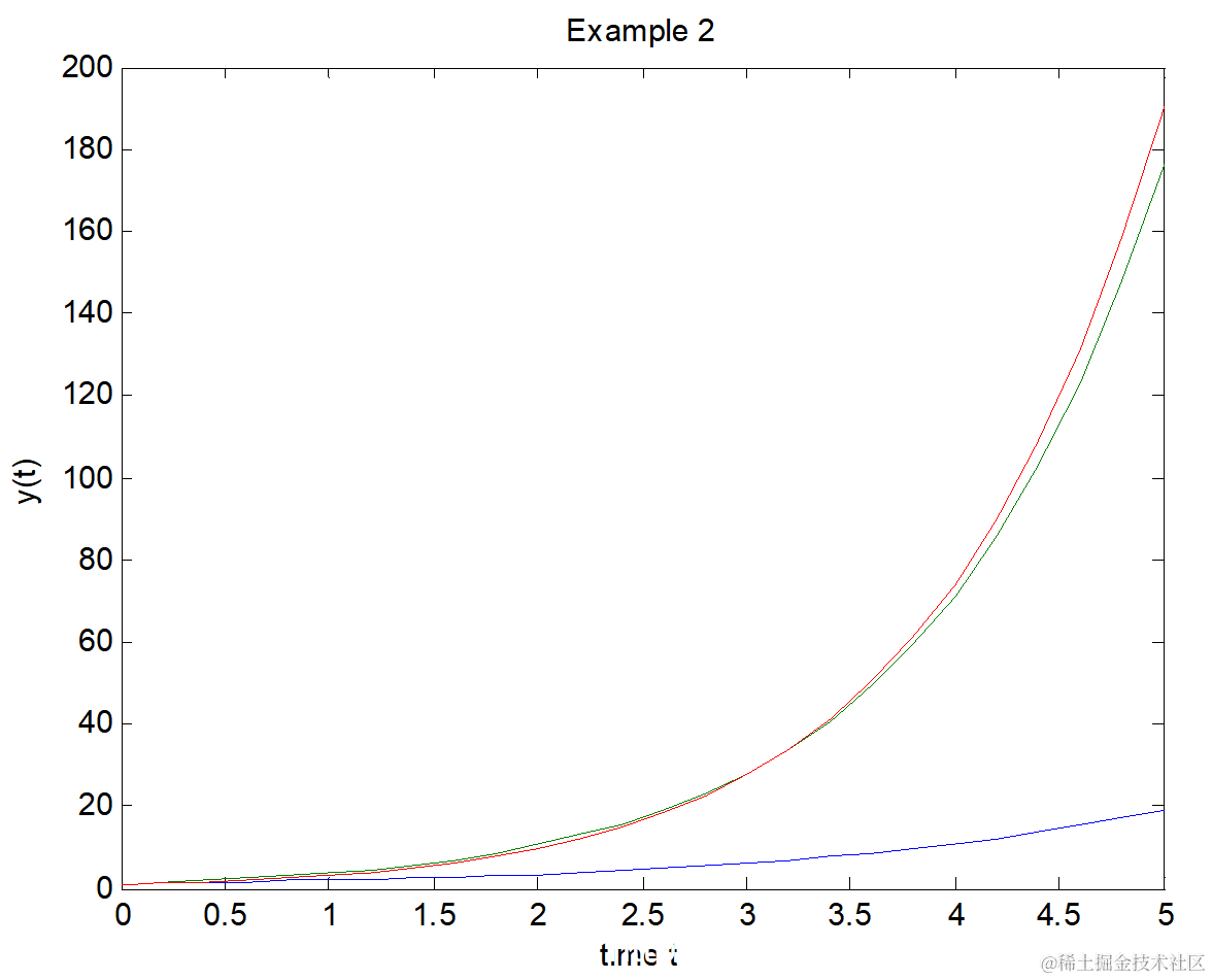 sol = dde23('exam1f',[1, 0.2],ones(3,1),[0, 5]);