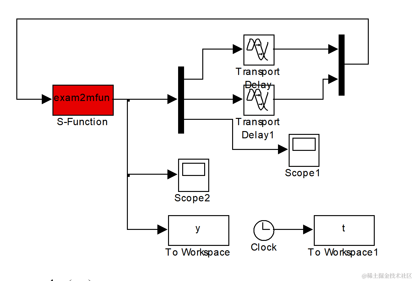 注:用Simulink中S函数求解时滞微分方程的核心思想在于:将时滞变量作为S函数的外部输入。