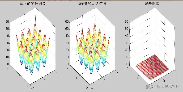 用newrb()创建RBF网络是一个不断尝试的过程(从程序的运行可以看出来),在创建过程中,需要不断增加中间层神经元的和个数,知道网络的输出误差满足预先设定的值为止。