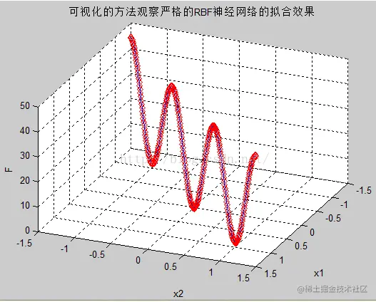 title('可视化的方法观察严格的RBF神经网络的拟合效果');
