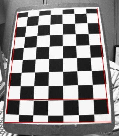 一些针孔相机会给图像带来明显的失真。两种主要的变形是径向变形和切向变形。径向变形会导致直线出现弯曲。距图像中心越远,径向畸变越大。例如,下面显示一个图像,其中棋盘的两个边缘用红线标记。但是,您会看到棋盘的边框不是直线,并且与红线不匹配。所有预期的直线都凸出。有关更多详细信息,请访问“失真(光学)”。
