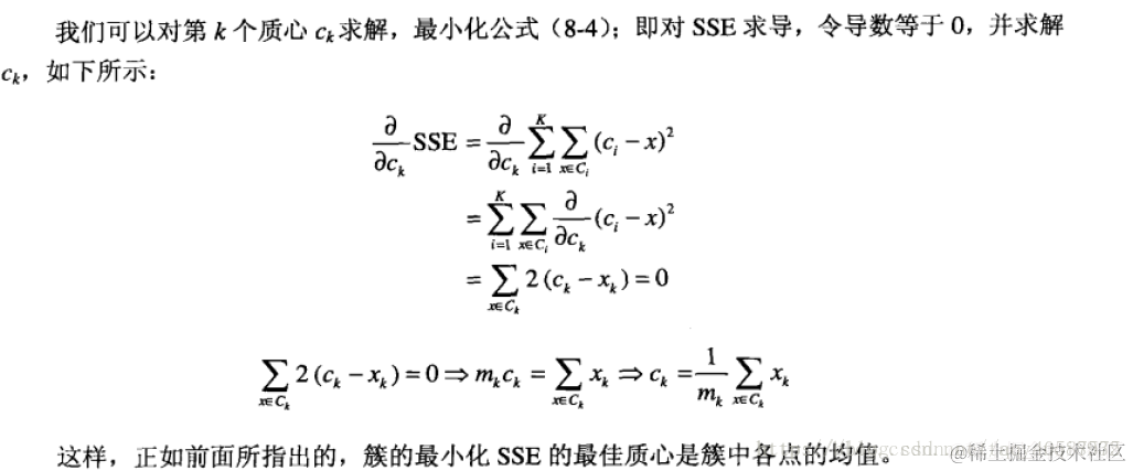 •以欧式距离来衡量距离大小,使用误差平方和( Sum of the Squared Error,SSE ) 作为聚类的目标函数:
