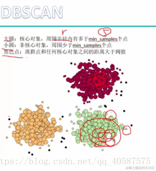 •大圆:核心对象,周围半径内有多于min_samples 个点