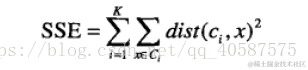 k表示k个聚类中心,ci表示第几个中心,dist表示的是欧几里得距离