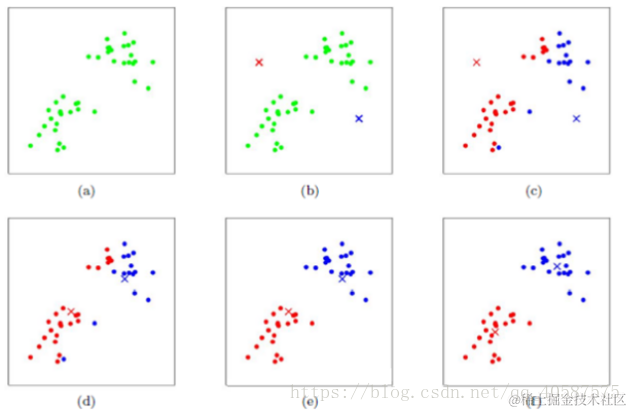 • 对每一个簇,计算簇中所有点的均值,并将均值作为质心