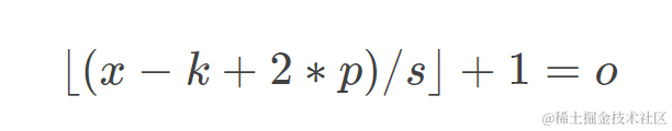 其中 x为目标尺寸,k是卷积核的尺寸, p表示填充的个数, o表示输出的尺寸,s表示步长。