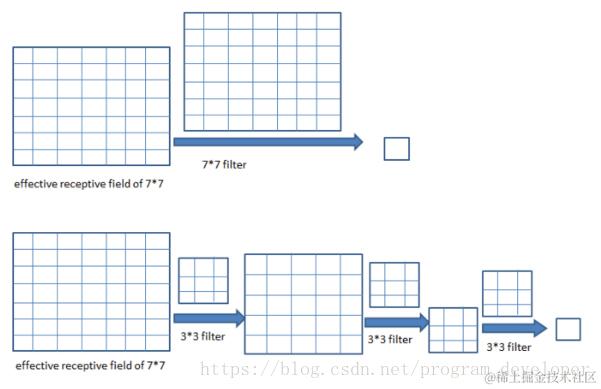 图3:三层3*3卷积核操作之后的感受野是7*7