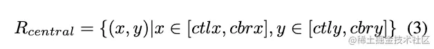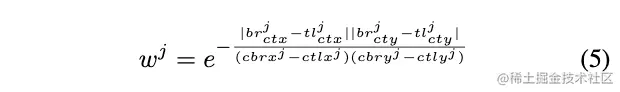 为中心区域对应预测框边长的比例,根据向心偏移计算出左上角点的中心点和右下角点的中心点,计算满足中心区域关系的预测框的权值: