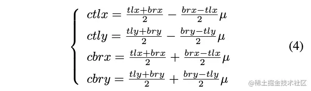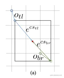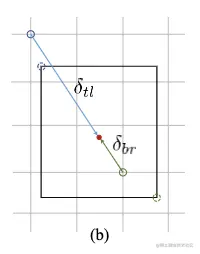 对于,几何中心为,定义左上角点和右下角点的向心偏移为: