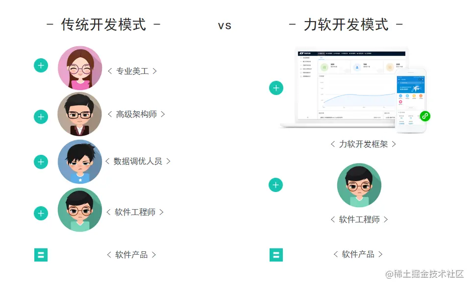 相较于定制开发和从基础自主搭建,采用力软开发方案仅需一套框架的成本,并且对框架使用人员的技术没有硬性要求,新手也可快速上手。