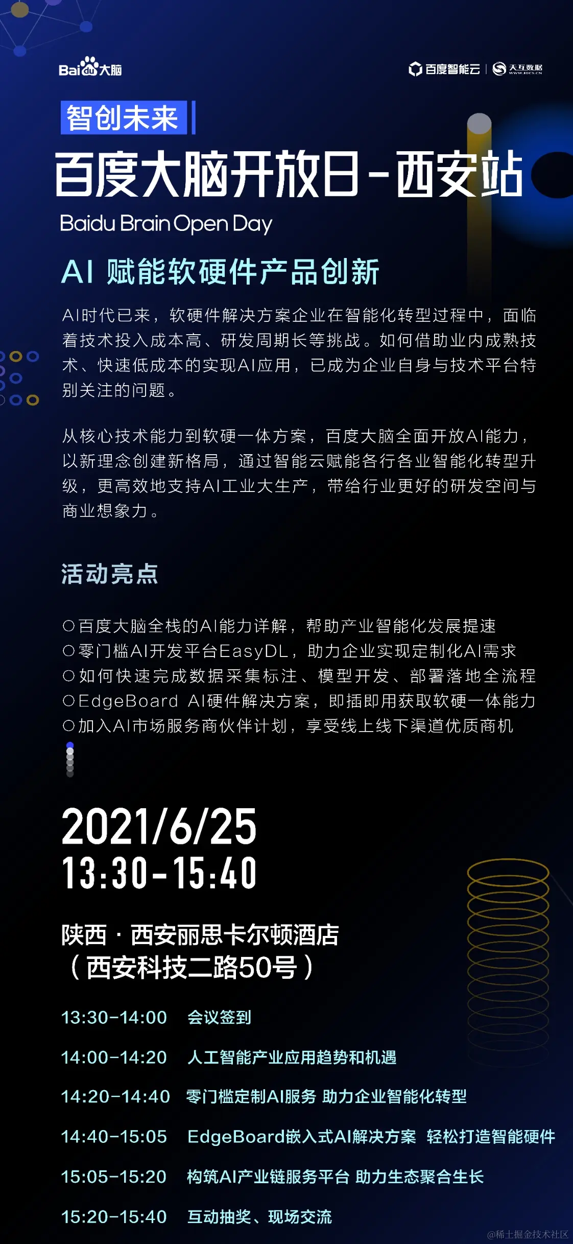 AI 时代已来,软硬件解决方案企业在智能化转型过程中,面临着技术投入成本高、研发周期长等挑战。如何借助业内成熟技术、快速低成本的实现 AI 应用,已成为企业自身与技术平台特别关注的问题。 从核心技术能力到软硬一体方案,百度大脑全面开放 AI 能力,以新理念创建新格局,通过智能云赋能各行各业智能化转型升级,更高效地支持 AI工业大生产,带给行业更好的研发空间与商业想象力。 本次百度大脑开放日西安站,不但可以参与线下活动,与百度产品、技术专家面对面深入交流;还可以线上观看直播,随时随地了解精彩内容,参与直播互动赢大奖!点击链接www.wjx.top/vj/t91pv3R.… 立即报名