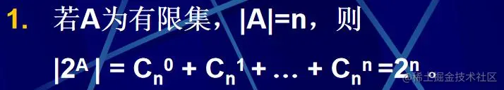集合的基数 :有限集合的元素数(势,浓度)。集合A的基数记为|A|