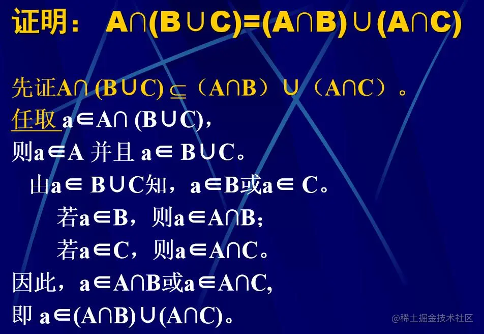利用集合的基本算律以及已证明的集合等式,通过相等变换将待证明的等式左(右)边的集合化到右(左)边的集合,或者两边同时相等变换到同一集合