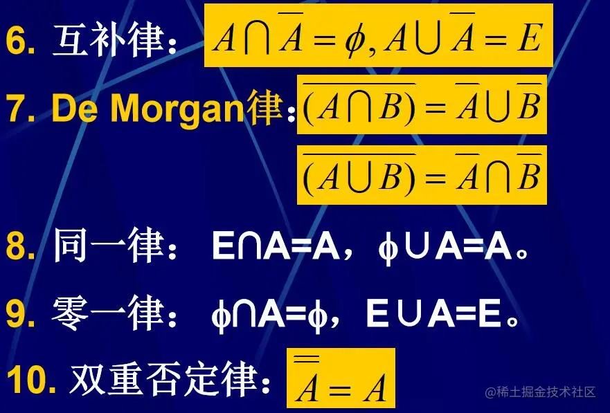 - 关系的交:R ∩ S={(x,y)|xA, yA,xRy且xSy}