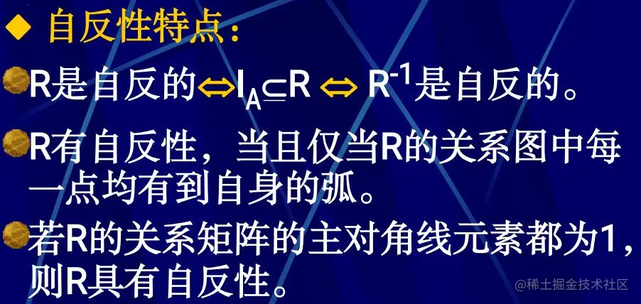 逆关系:R-1 ={(y, x)|xA, yA, 并且有xRy}