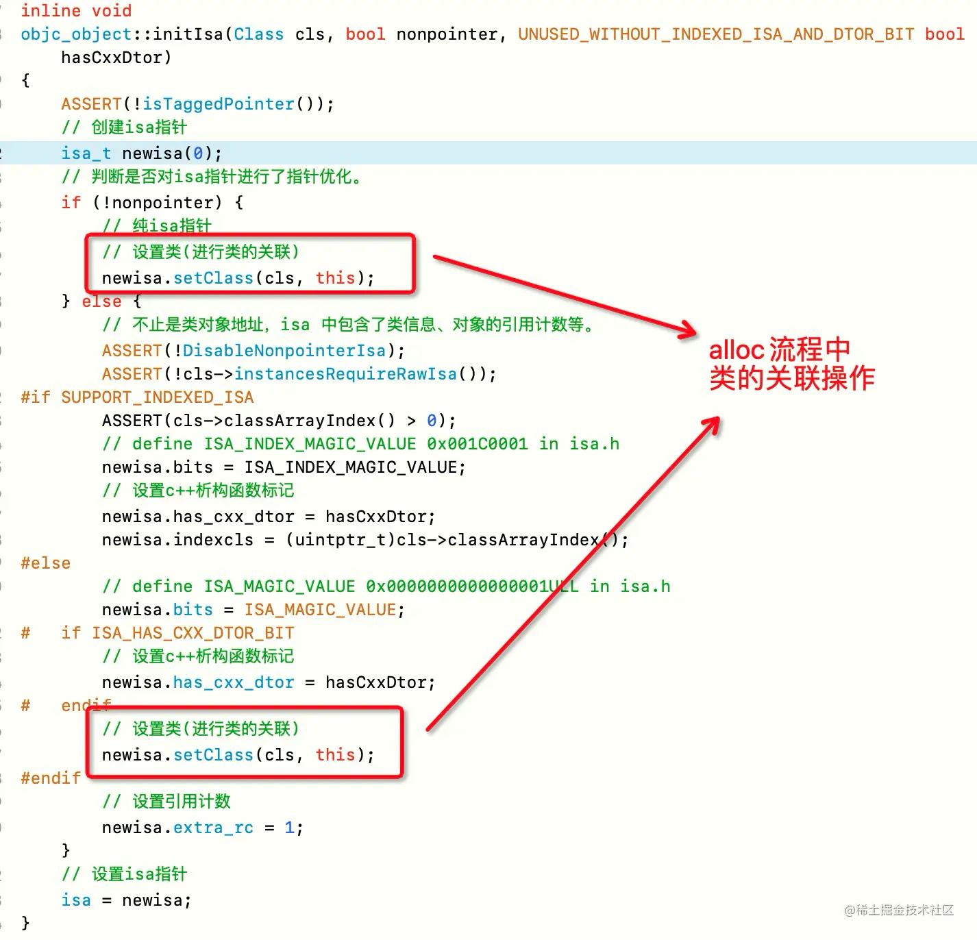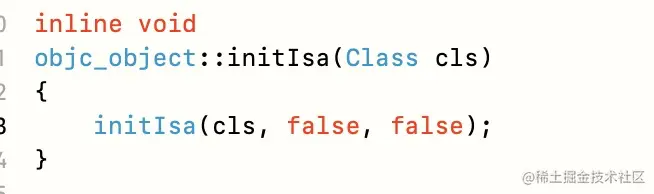 objc_object结构体的观点,即对象在调用initIsa方法时,也是底层objc_object的结构体调用initIsa方法。