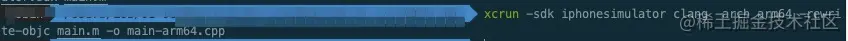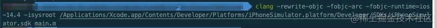 $ xcrun -sdk iphonesimulator clang -arch arm64 -rewrite-objc main.m -o main-arm64.cpp真机编译: