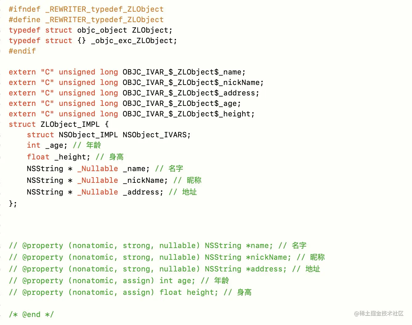 NSObject_IMPL结构体。即对象继承于NSObject。属性以