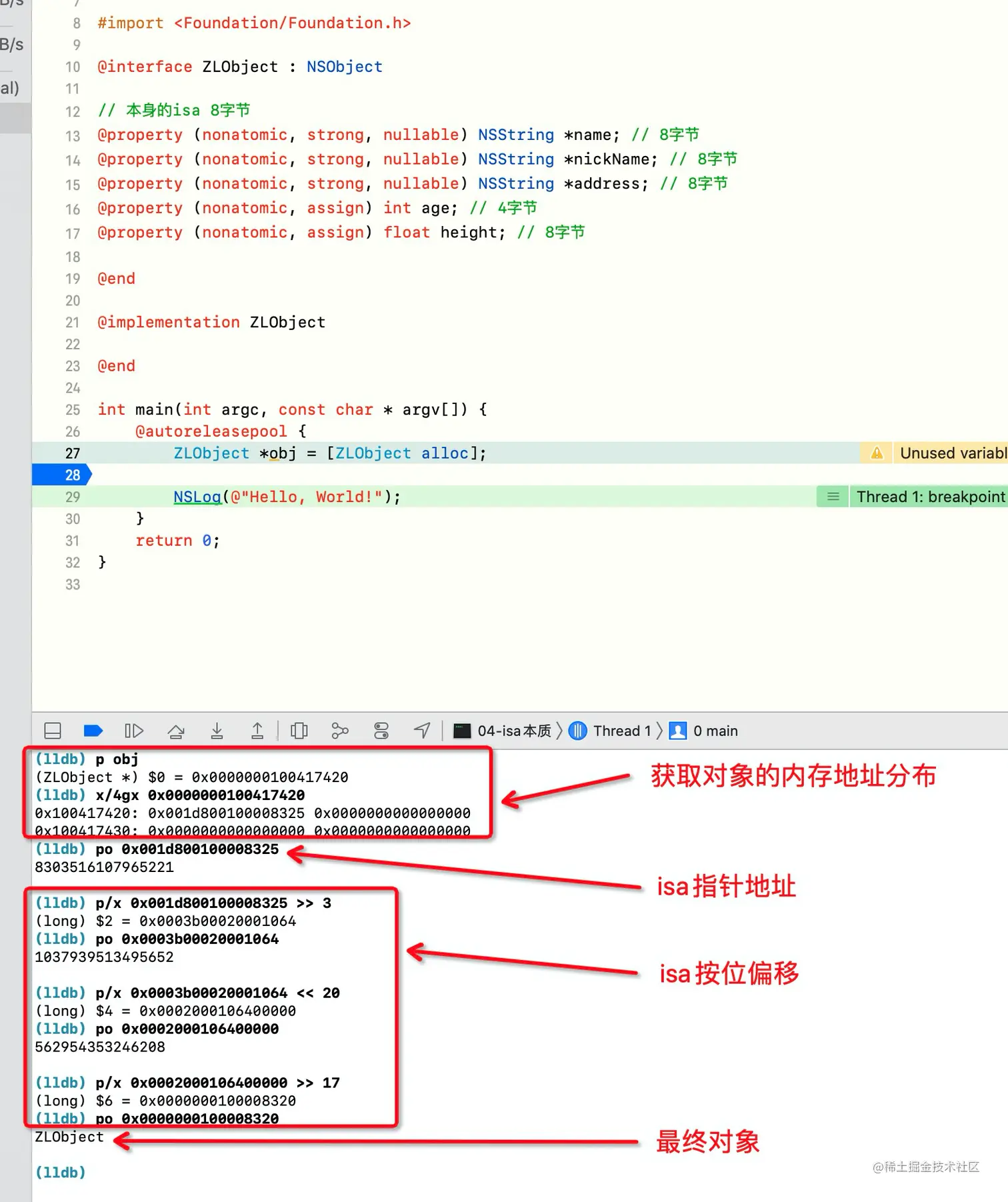 通过分析 alloc原理 和 内存对齐原理,只是了解了如何创建 对象,alloc流程 及 内存对齐 原则,却对 对象 的本质及 isa 知之甚少。下面具体理解一下对象的本质及isa的原理。