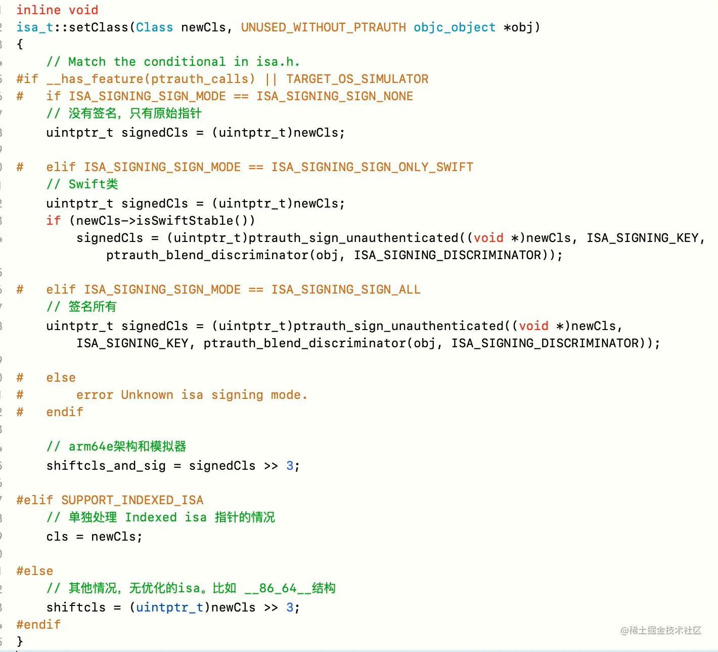 __has_feature:此函数的功能是判断编译器是否支持某个功能ptrauth_calls:指针身份验证,针对arm64e架构;使用Apple A12或更高版本A系列处理器的设备(如iPhone XS、iPhone XS Max和iPhone XR或更新的设备)支持arm64e架构- 参考链接:developer.apple.com