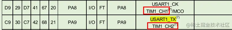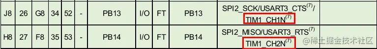 PA8为定时器1通道1输出口,PB13为定时器1通道1互补输出口。