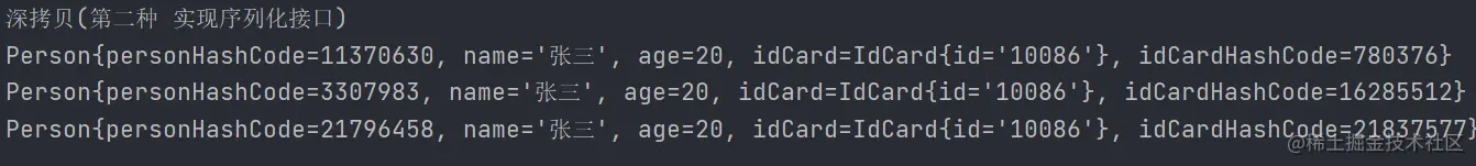 System.out.println("深拷贝(第二种 实现序列化接口)");