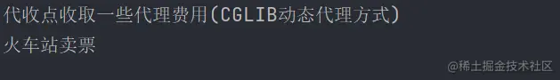 System.out.println("代收点收取一些代理费用(CGLIB动态代理方式)");