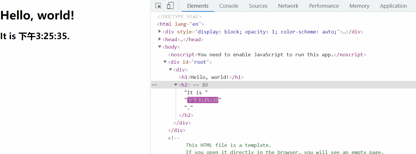 <h2>It is {new Date().toLocaleTimeString()}.</h2>