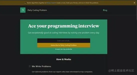 与其余页面不同,此站点没有作业列表。 相反,您输入电子邮件,他们每天都会发送给您1种算法来尝试。