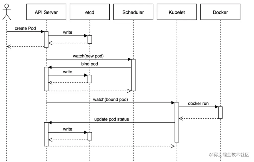 1.用户提交创建Pod的请求,可以通过API Server的REST API ,也可用Kubectl命令行工具,支持Json和Yaml两种格式;