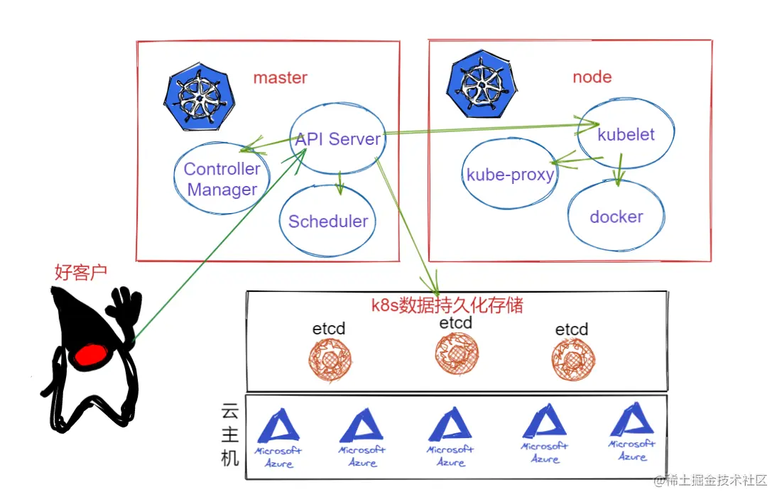 kubelet:负责维护容器的生命周期,同时也负责Volume(CSI)和网络(CNI)的管理;