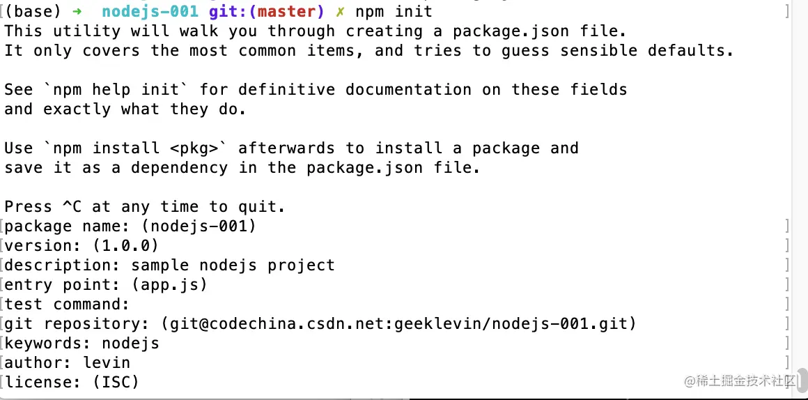 稍微看一下概念,打开命令终端输入:npm init