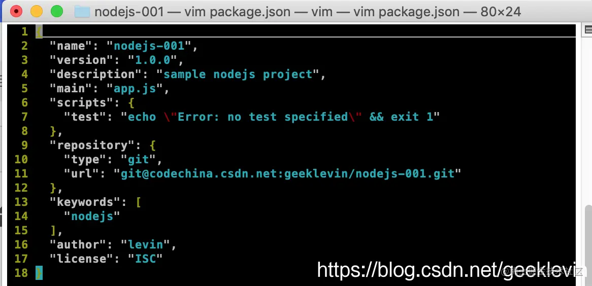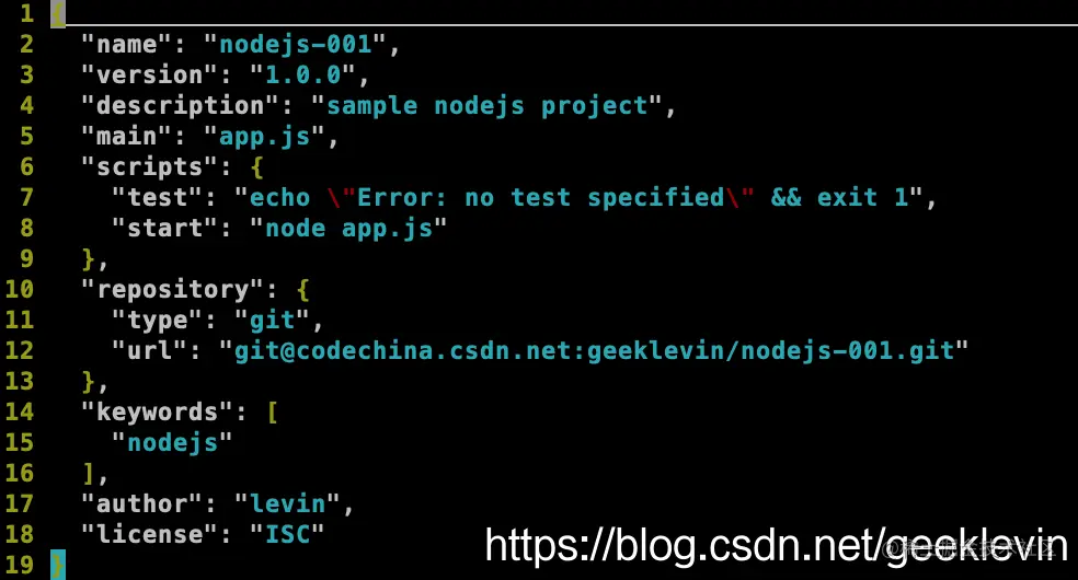 我们打开package.json, 它定义了这个项目的name,version和描述。