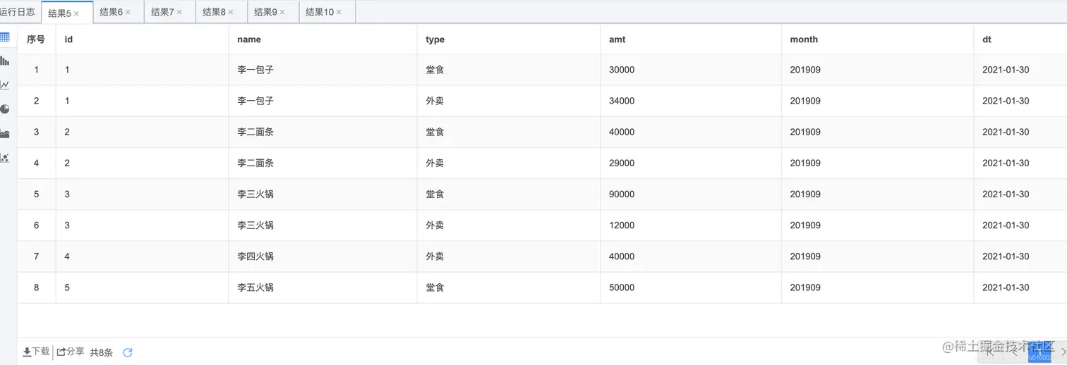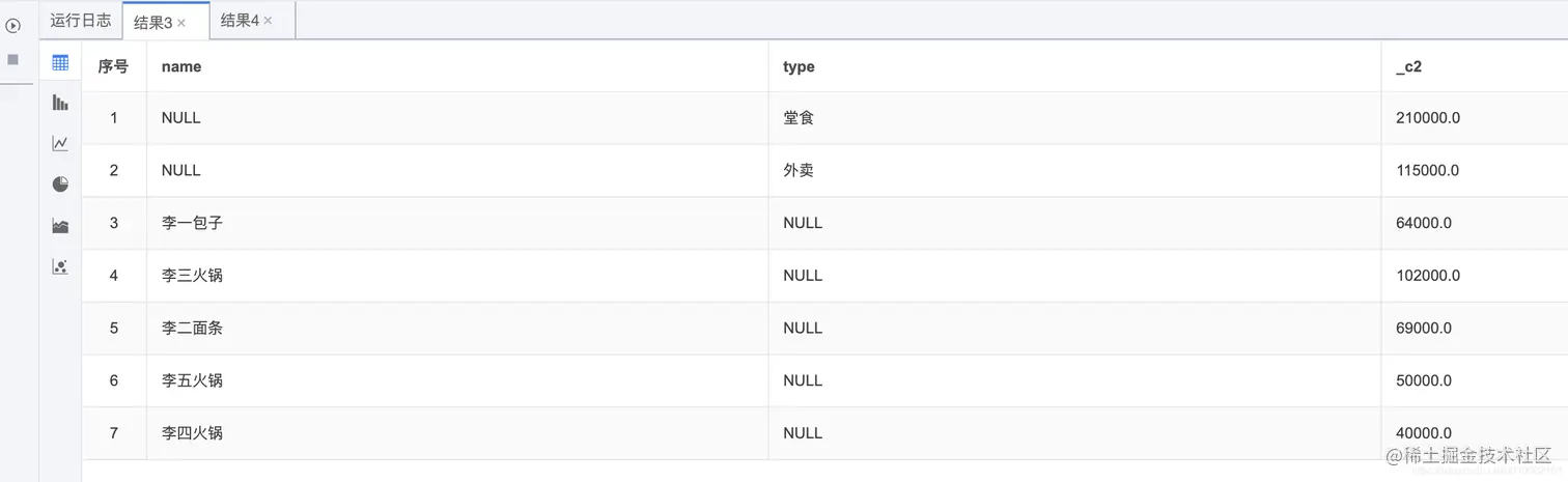 where dt = '2021-01-30' group by name,type WITH ROLLUP; -- res9