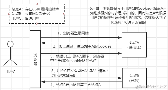 - 用户访问的网站对恶意网站发出了一些请求,且这些请求是用户不知情的情况下完成的