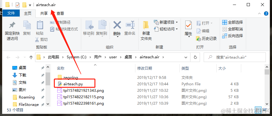 实际上.air脚本文件时一个普通的文件夹,里面附带一个同名的.py文件,两者必须同名