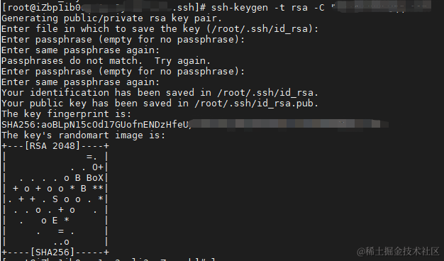 - 第一次:生成公钥和私钥的文件名称(默认即可)