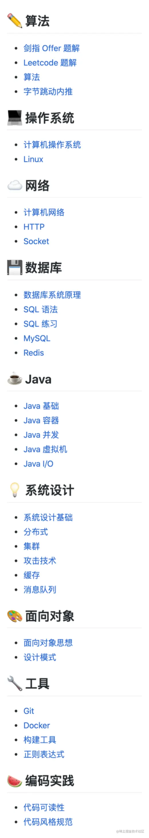 这个 repo 是技术面试必备基础知识,包括算法、计算机操作系统、计算机网络、系统设计等等。