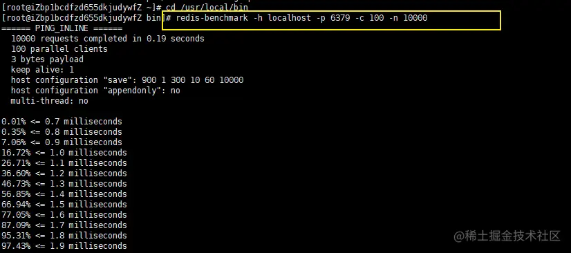 redis-benchmark是官方自带的性能测试工具,可以有效的测试redis服务的性能。在bin目录下。