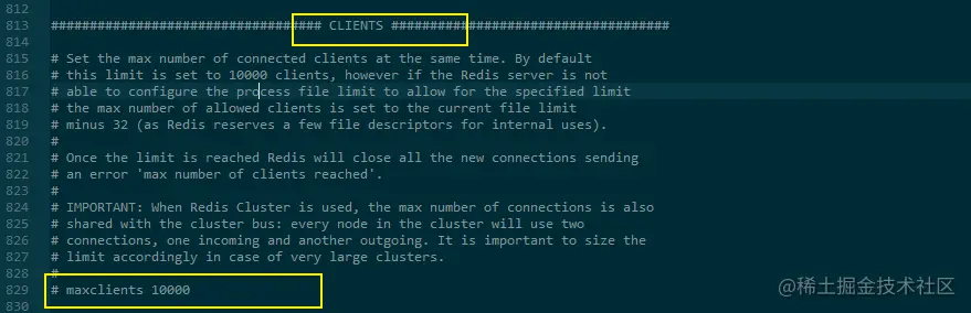 clients客户端 maxclients 10000:设置能连上redis的最大客户端连接数量