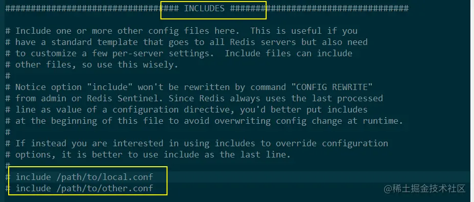 - 指定包含其它的配置文件,可以在同一主机上多个Redis实例之间使用同一份配置文件,而同时各 个实例又拥有自己的特定配置文件