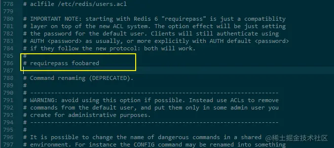 - 设置Redis连接密码,如果配置了连接密码,客户端在连接Redis时需要通过AUTH 命令提供密码, 默认关闭