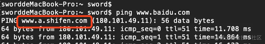 3.CNAME记录 CNAME记录我们称之为别名记录,一般用来指定域名的别名。如www.baidu.com便有一个别名为www.a.shifen.com。