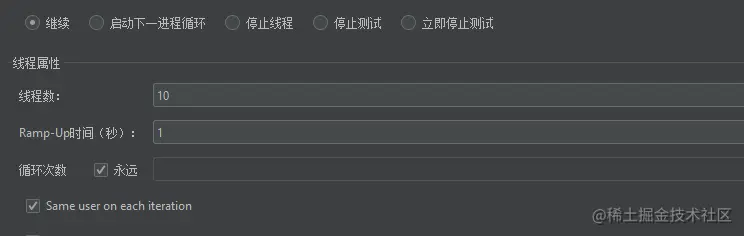 使用JMeter一秒钟打进10个线程(请求),处理每个请求的时间为1秒,阈值设定的200毫秒,在未来的一秒钟时间窗口内,断路器打开微服务不可用。