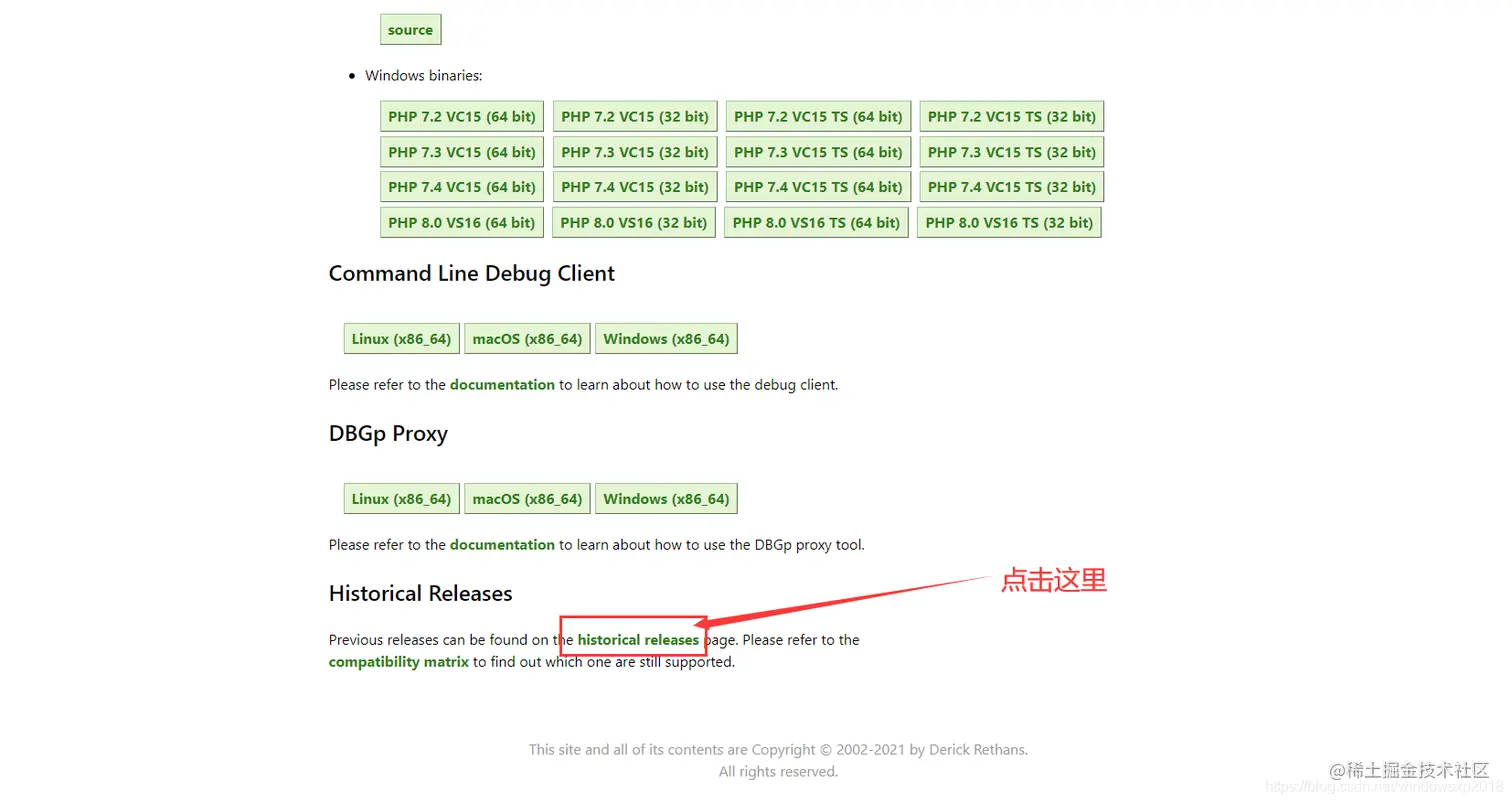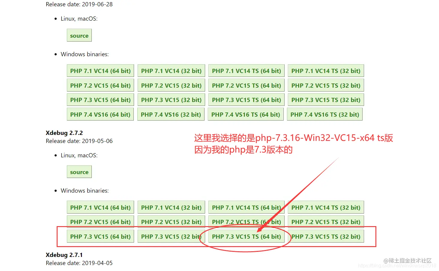进入historical releases(历史版本) 页面 这里我选择是Xdebug 2.7.2版本 发布日期是2019-05-06的